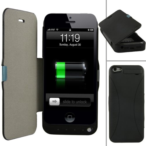 BXT® 2600 mAh for iPhone5 External Rechargeable Spare Backup Extended Battery Charger Case Genuine Leather Folded Two High Capacity Power Bank Pack Portable External Battery Charger for iPhone 5 (iPhone5-2600mAh, Black)