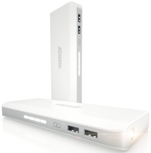 - VoltSaf also does double-duty as a powerful LED flashlight, a bonus feature that is sure to come in handy when you need it the most. You'll never be in the dark when you have VoltSaf at your side. With dual high-output USB connectors (2.1A and 1A) you can charge your phone and a tablet that requires higher power output at the same time!